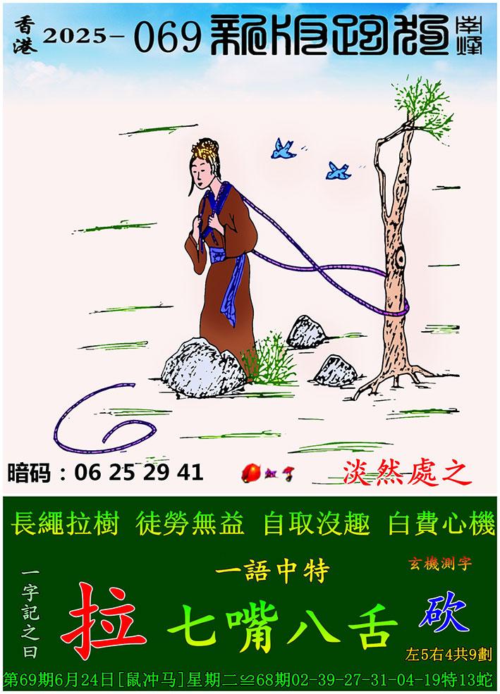 069期新版跑狗一字記之曰:【拉】 玄機測字:《砍》 一語中特:七嘴八舌