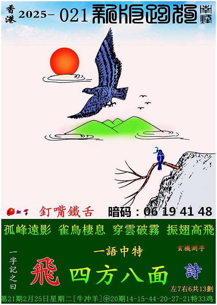 021期新版跑狗一字記之曰:【飛】玄機測字:《詩》 一語中特:四方八面