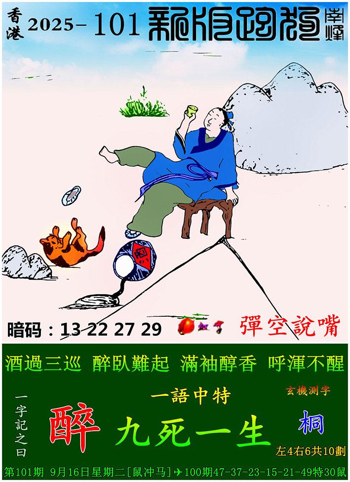 101期新版跑狗一字記之曰:【醉】 玄機測字:《桐》 一語中特:九死一生