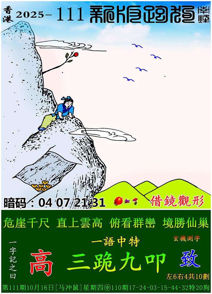 111期新版跑狗一字記之曰:【高】玄機測字:【致】 一語中特:三跪九叩