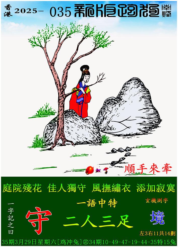 035期新版跑狗一字記之曰:【守 】 玄機測字:《境》 一語中特:二人三足