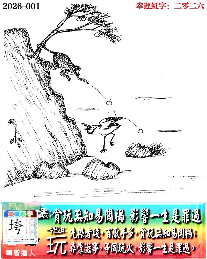 001期老版跑狗一字記之曰:【玩】 詩雲:貪玩無知易闖禍,影響一生是罪過。