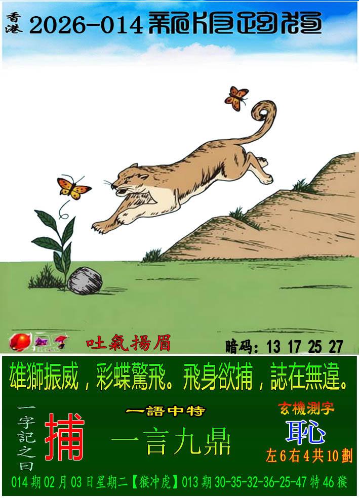 014期新版跑狗一字記之曰:【捕】 玄機測字:《恥》 一語中特:一言九鼎