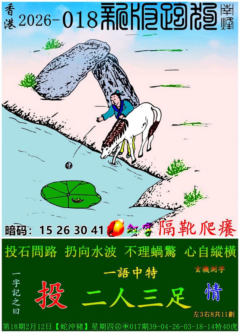 018期新版跑狗一字記之曰:【投】 玄機測字:《情》 一語中特:二人三足