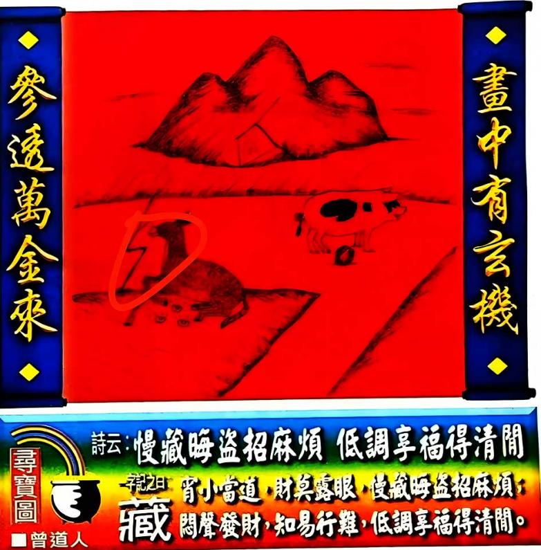 026期老版跑狗一字記之曰:【藏】 詩雲:慢藏晦盜招麻煩,低調享福得清閒。