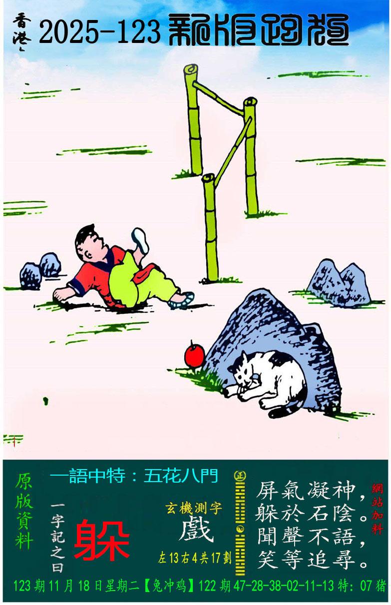 123期新版跑狗一字記之曰:【躲】 玄機測字:《戲》 一語中特:五花八門