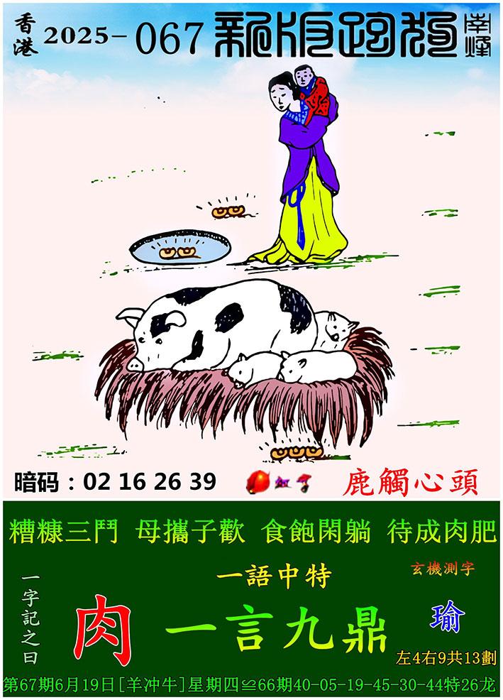 067期新版跑狗一字記之曰:【肉】 玄機測字:《瑜》 一語中特:一言九鼎