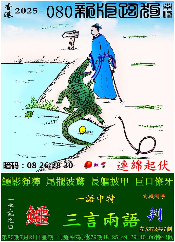 080期新版跑狗一字記之曰:【鱷】 玄機測字:《判》 一語中特:三言兩語