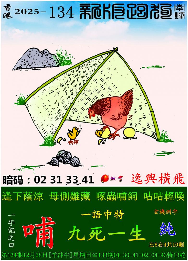 134期新版跑狗一字記之曰:【哺】 玄機測字:《純》 一語中特:九死一生